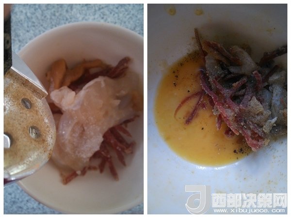 2、加點食鹽和雞粉揉勻之后腌制半個小時;