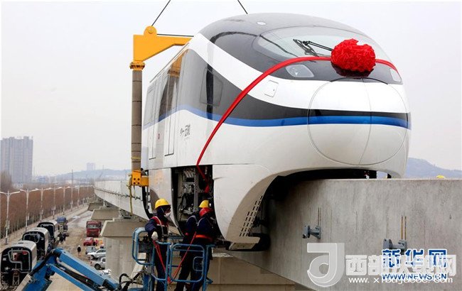 1月3日,在山東省鄒城市,工作人員進(jìn)行旅游云軌“孔孟旅游快線”機(jī)車上梁作業(yè)。當(dāng)日,孔子故里曲阜、孟子故里鄒城之間的云軌“孔孟旅游快線”完成機(jī)車上梁作業(yè)。這條旅游快線串聯(lián)起“三孔”景區(qū)、高鐵曲阜東站和曲阜南站、九龍山景區(qū)、孟廟孟府景區(qū)等。云軌是中國首條自主知識產(chǎn)權(quán)的跨座式單軌列車,類似于“空中小火車”,最高時速可達(dá)80公里。(田楊 攝)