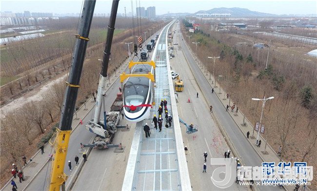旅游云軌“孔孟旅游快線”進(jìn)行機(jī)車上梁作業(yè)