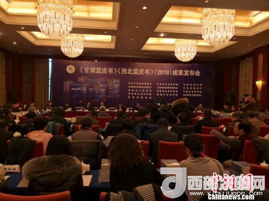1月8日,2018年度《甘肅藍(lán)皮書(shū)》、《西北藍(lán)皮書(shū)》成果發(fā)布會(huì)在蘭州舉行。圖為發(fā)布會(huì)現(xiàn)場(chǎng)。馮志軍攝