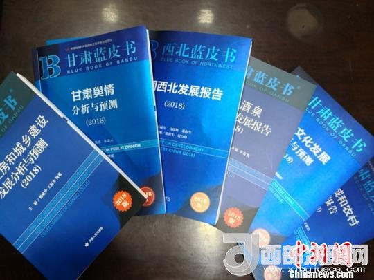 圖為2018年度《甘肅藍(lán)皮書(shū)》和《西北藍(lán)皮書(shū)》相關(guān)成果。馮志軍攝