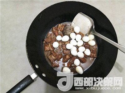 8.大概20分鐘后,放入食鹽,鵪鶉蛋繼續(xù)燒制。