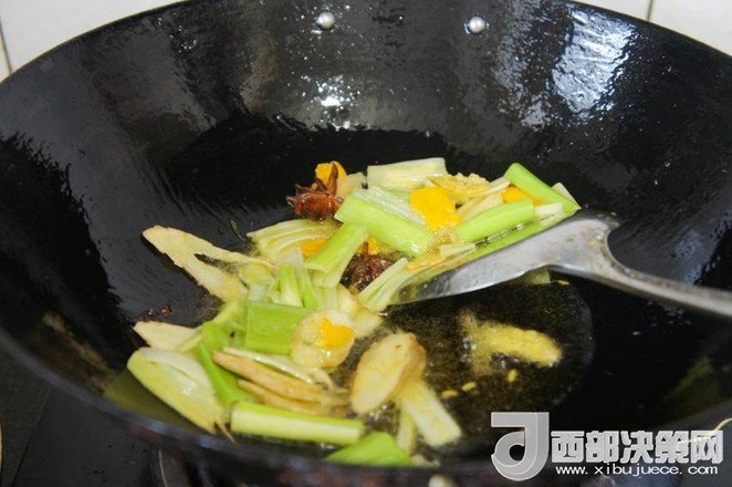 輔料:油適量 鹽適量 生抽適量 老抽適量 蔥姜適量 大料適量 肉桂適量 小茴香適量 淀粉適量 橘皮適量 蠔油適量 糖適量 香葉適量