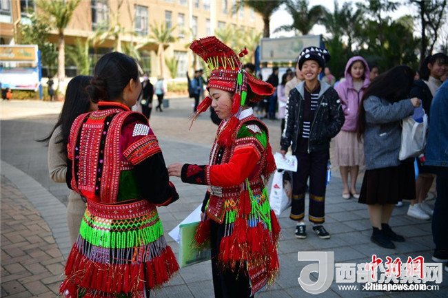1月29日,昆明,身著民族服飾的考生。