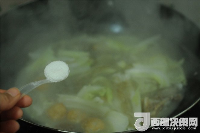 8.煮至丸子變大完全熟透,將排骨湯和排骨一起放入湯里