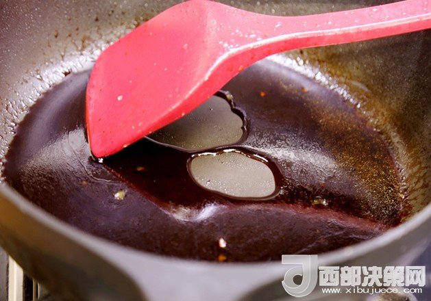 14.蒸好后將里面的水潷出來(lái)倒入鍋里,加入適量生抽、蠔油,幾滴老抽,少許水淀粉,翻均勻。