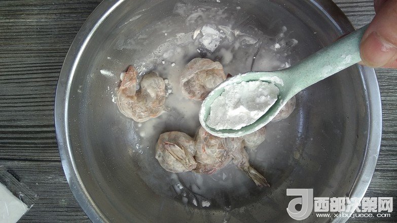 2.蝦去殼去蝦線清理干凈用料酒,胡椒粉腌制一下