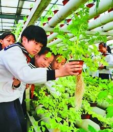 山東省濱州市博興縣第一小學(xué)的學(xué)生們?cè)谥参锷鷳B(tài)館里學(xué)知識(shí)。新華社發(fā)
