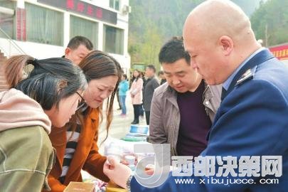 廣元市工商局工作人員進農(nóng)村教授村民識假辨假知識。肖偉 攝