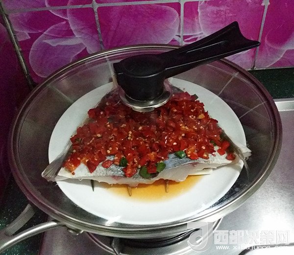 8.加蓋開大火,根據(jù)魚頭大小約蒸8~10分鐘左右