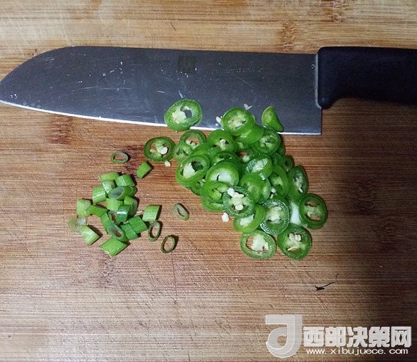 10.趁蒸魚的時(shí)候、將杭椒和蔥葉洗凈切好