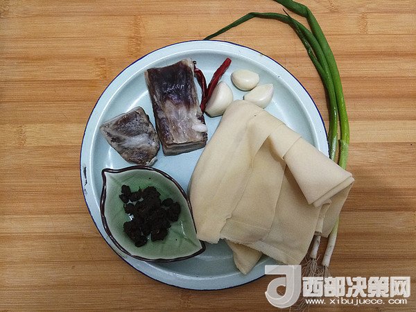 主料:咸肉 50克 千張 1張