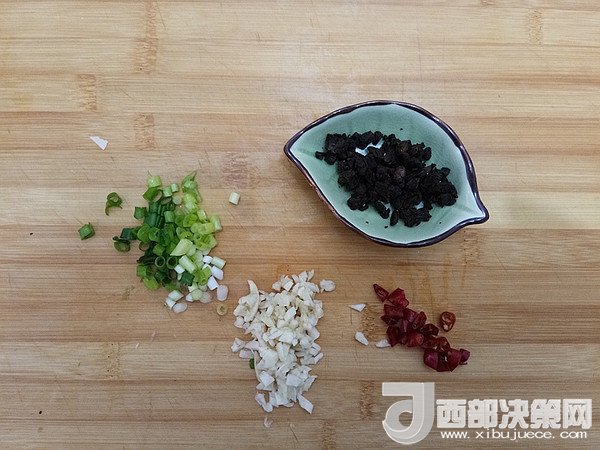 輔料:豆豉 1茶匙 大蒜 3瓣 生抽 1茶匙 小蔥 2棵 姜絲 5克 干辣椒 2個(gè)