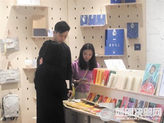 讀者在三聯(lián)韜奮書店(成都)欣賞文創(chuàng)產(chǎn)品