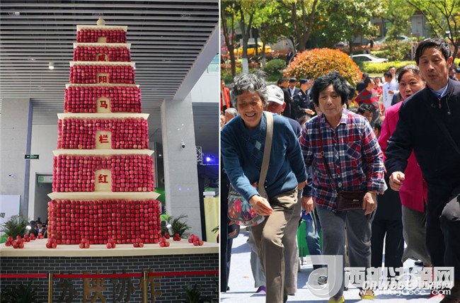 展館里3000多個陜西大蘋果堆出的大雁塔格外醒目,兵馬俑機(jī)器人作為陜西蘋果宣傳大使,能回答觀眾提出的各種問題,尤其是陜西蘋果方面的問題,沒有它回答不出來的。