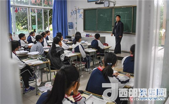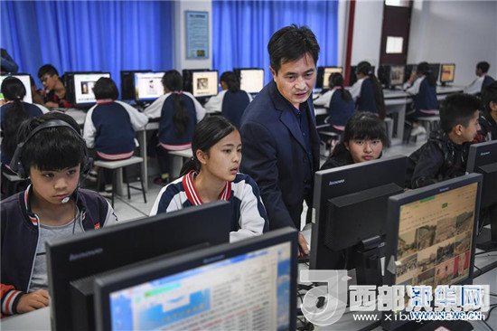 木魚中學教導主任張錫華(前左三)在給學生上信息技術課(4月24日攝)。