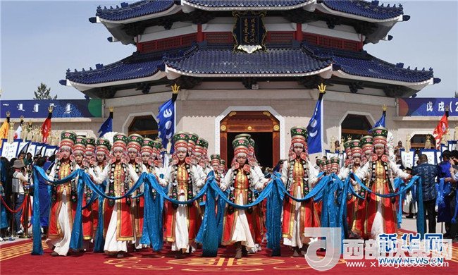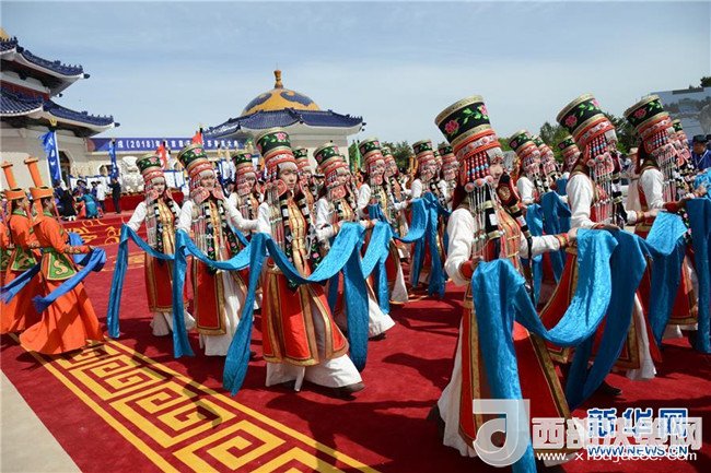 5月6日,在成吉思汗陵,姑娘們手捧哈達進行祭祀活動。新華社記者 鄒予 攝