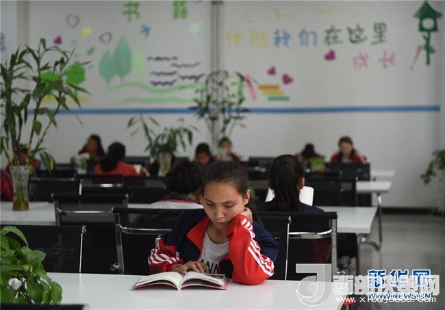 在北京援建的墨玉縣北京中學校園里,學生在圖書館里閱讀(4月20日攝)。