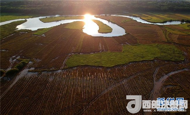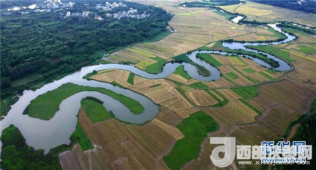 空中俯瞰??谑协偵絽^(qū)曲溪濕地(5月30日無(wú)人機(jī)拍攝)。