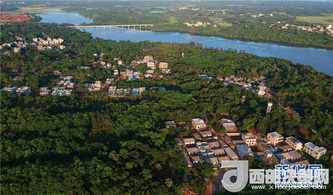 海口市瓊山區(qū)云龍鎮(zhèn)的村鎮(zhèn)掩映在綠樹和濕地中(5月30日無(wú)人機(jī)拍攝)。