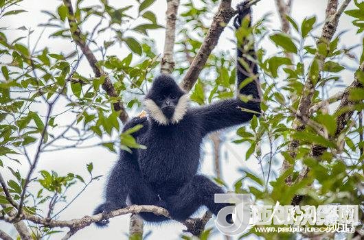 圖為普洱太陽河生態(tài)環(huán)境建設(shè)示范點(diǎn)內(nèi)的白頰長(zhǎng)臂猿。(供圖)