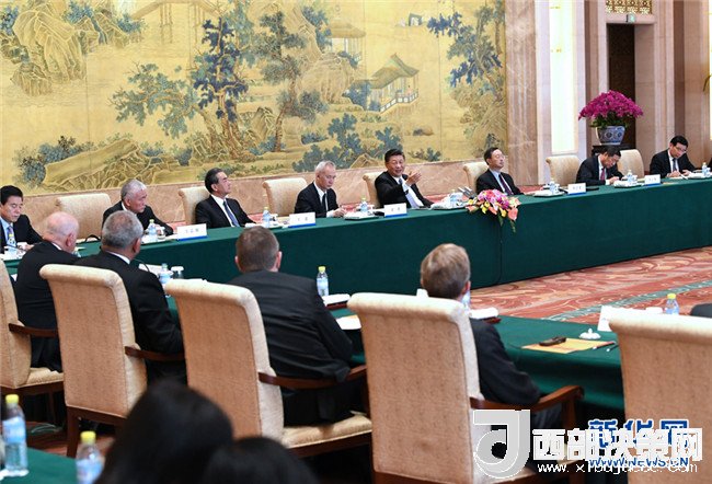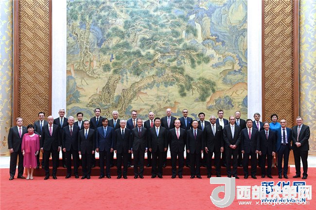 6月21日,國家主席習(xí)近平在北京釣魚臺(tái)國賓館會(huì)見來華出席“全球首席執(zhí)行官委員會(huì)”特別圓桌峰會(huì)的知名跨國企業(yè)負(fù)責(zé)人,并同他們座談交流。新華社記者丁林?jǐn)z