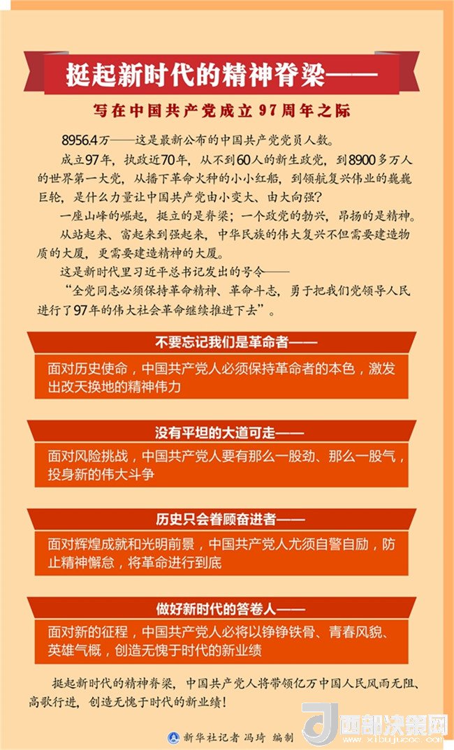 挺起新時(shí)代的精神脊梁,中國共產(chǎn)黨人將帶領(lǐng)億萬中國人民風(fēng)雨無阻、高歌行進(jìn),創(chuàng)造無愧于時(shí)代的新業(yè)績!(記者:趙承、詹勇、張曉松、謝良、周文林、陳煒偉、朱基釵、吳晶、姜瀟、王卓倫、榮啟涵)