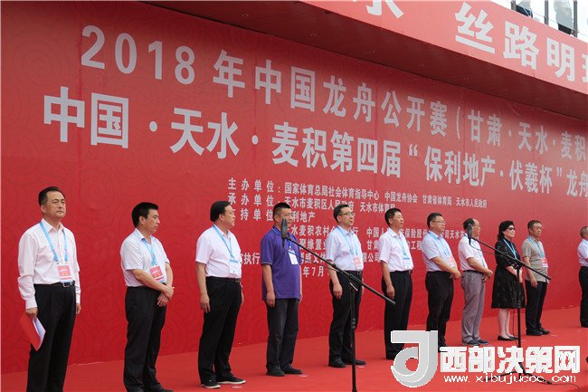 9時整,2018中國龍舟公開賽(天水麥積站)暨保利地產(chǎn)“伏羲杯”第四季龍舟大賽正式拉開序幕,來自全國及甘肅省的近25家代表隊展開激烈角逐。中國龍舟協(xié)會副主席劉北劍,天水市人大常委會主任、市委秘書長蔣曉強,天水市人大常委會原主任、市關工委主任李世榮,市委常委、常務副市長趙四輩,市委常委、宣傳部部長張建杰,市人大常委會副主任張克強,副市長、市公安局局長馬瑛,市政協(xié)副主席屈光平,市政協(xié)副主席、麥積區(qū)委書記張智明,國家體育總局社會體育指導中心二部主任、國際龍舟協(xié)會副秘書長、亞洲和中國龍舟協(xié)會秘書長余漢橋,省體育局群眾體育處處長武志峰,市人大常委會秘書長楊坤,市政府副秘書長、外事僑務辦主任張有信,麥積區(qū)人大常委會主任賈應珍等出席開幕式,并為龍舟點睛。
