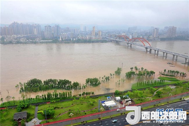 7月3日,在四川省南充市,嘉陵江南充主城區(qū)段洪峰過(guò)境,沿岸大量綠地被淹。 新華社發(fā)(樂(lè)校臣 攝)