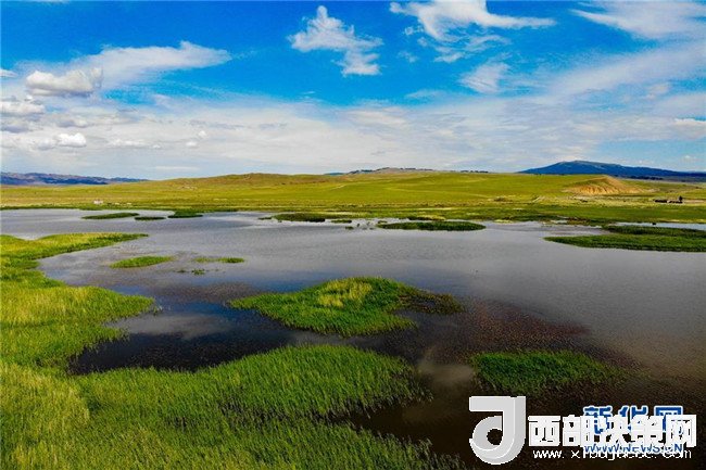 7月3日在新疆哈密天山風(fēng)景區(qū)拍攝的伊吾馬場(chǎng)濕地。新華社發(fā)(普拉提 攝)