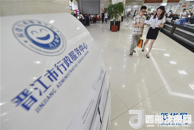 在晉江市行政服務(wù)中心,工作人員(前右)在引導(dǎo)市民辦理業(yè)務(wù)(6月19日攝)新華社記者 宋為偉 攝