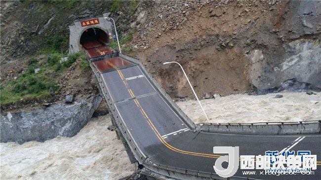 7月13日在四川茂縣國(guó)道213線疊溪隧道旁拍攝的垮塌橋梁。記者從當(dāng)?shù)亟煌ú块T獲悉,7月13日凌晨5點(diǎn)左右,受持續(xù)強(qiáng)降雨帶來的水位上漲影響,在四川省阿壩藏族羌族自治州茂縣境內(nèi),國(guó)道213線汶川至川主寺公路K759+550米處、疊溪隧道旁一座跨越岷江的隧道連接橋垮塌,導(dǎo)致道路中斷。由于此前已經(jīng)對(duì)車輛限行,垮塌時(shí)無車輛通過,無人員傷亡。當(dāng)?shù)叵嚓P(guān)部門正密切監(jiān)測(cè)該橋梁狀態(tài),避免發(fā)生次生災(zāi)害。新華社發(fā)