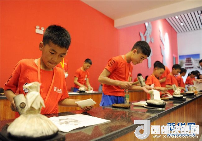 7月24日,牦牛坪小學(xué)學(xué)生在大明宮考古探索中心體驗拓片技藝。