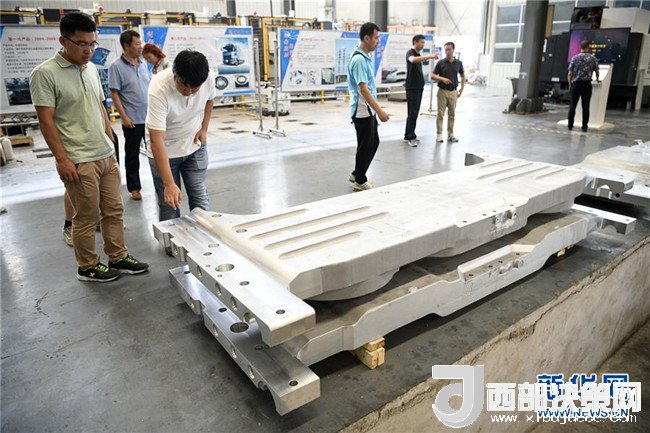 位于石嘴山市的寧夏維爾鑄造有限公司,參觀者在觀看高鐵枕梁鑄件(7月31日攝)。 新華社記者 王鵬 攝