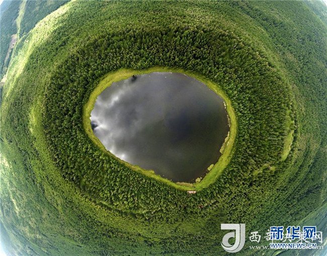 8月5日拍攝的阿爾山天池(無(wú)人機(jī)全景拍攝)。
