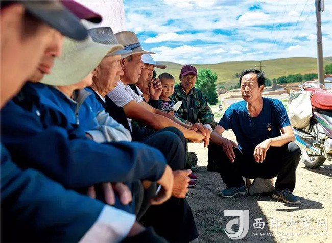 內(nèi)蒙古烏蘭察布市察哈爾右翼前旗黃茂營鄉(xiāng)南窯村駐村第一書記呂遠(yuǎn)成(右一)在與村民交流 彭源攝/ 本刊