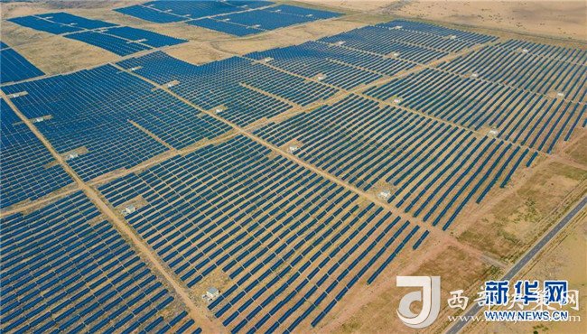 這是位于庫布其沙漠中的億利集團(tuán)生態(tài)能源光伏電站(7月11日無人機(jī)拍攝)。  新華社記者 彭源 攝