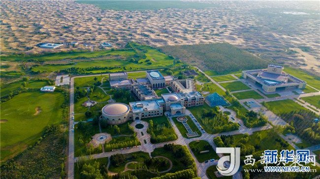 這是位于庫布其沙漠中的億利集團(tuán)阿木古龍甘草健康產(chǎn)業(yè)園(7月11日無人機(jī)拍攝)。 新華社記者 彭源 攝