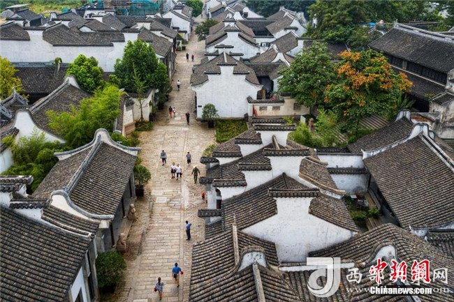 8月11日,航拍無(wú)錫惠山古鎮(zhèn),典型的江南民居錯(cuò)落有致,透出古樸韻味。