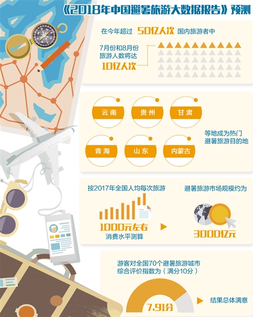 據(jù)中國旅游研究院等單位發(fā)布的《2018年中國避暑旅游大數(shù)據(jù)報告》(下稱《報告》)預(yù)測,在今年超過50億人次國內(nèi)旅游者中,7月份和8月份旅游人數(shù)將達10億人次,占全年游客數(shù)量的五分之一。其中,避暑旅游規(guī)模預(yù)計占一半,約5億人次?!秷蟾妗贩Q,這一數(shù)字將使中國成為全球最大的避暑旅游市場。