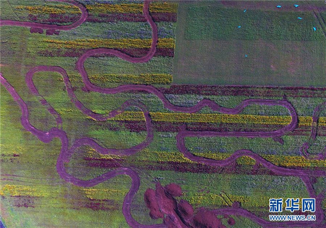云南羅平的七彩花田(9月5日無人機(jī)拍攝)。 新華社記者楊宗友攝