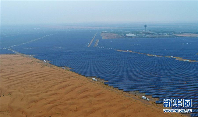 寧夏中衛(wèi)市沙漠光伏產(chǎn)業(yè)園光伏電站(8月31日無人機拍攝)。新華社記者王鵬攝