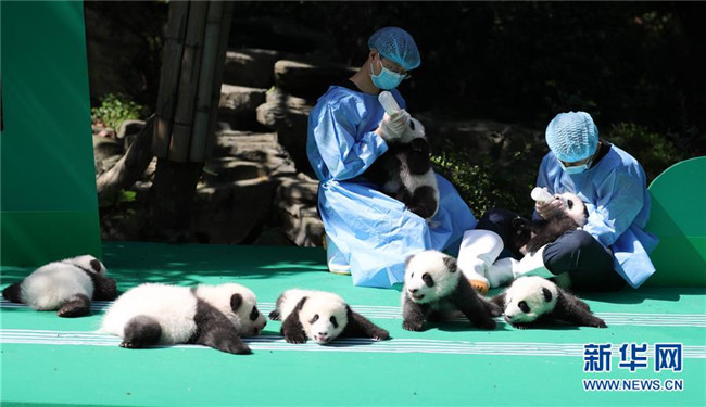 這是9月28日在成都大熊貓繁育研究基地月亮產(chǎn)房拍攝的大熊貓寶寶。 當(dāng)日,成都大熊貓繁育研究基地為2018年出生的12只新生大熊貓寶寶舉行了一場(chǎng)別開生面的亮相活動(dòng)。