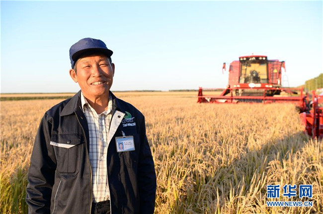 黑龍江建三江七星農(nóng)場職工秦泗利介紹自己工作40年來見證“北大荒”到“北大倉”的發(fā)展歷程(9月26日攝)。新華社記者王凱攝