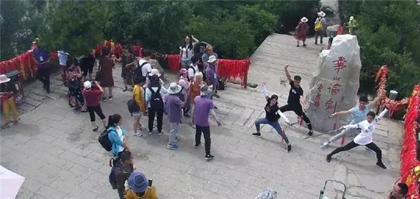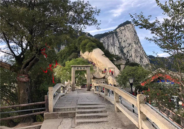 駐足在紀(jì)念亭的臺階上,聽游客談?wù)撝侨∪A山的英勇故事。經(jīng)過擦耳崖,注視著你在小心翼翼的行走的模樣。也經(jīng)過險峻異常的蒼龍嶺,好想大聲吶喊幾聲,聽聽天地間的回響。