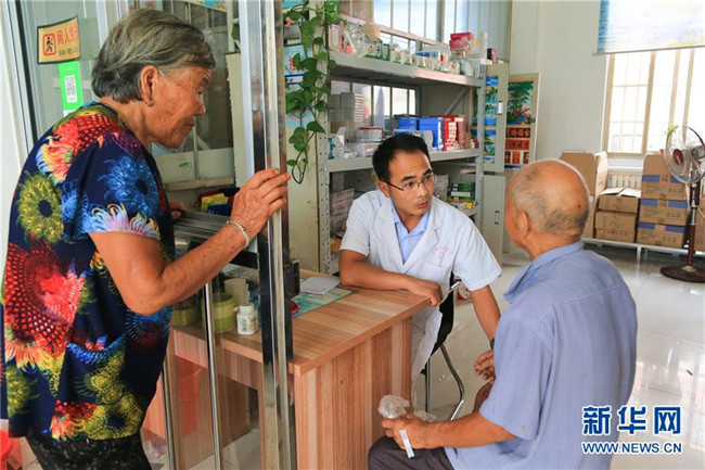 在山東費(fèi)縣朱田鎮(zhèn)崔家溝社區(qū),當(dāng)?shù)卮迕裨谛l(wèi)生室就診(8月22日攝)。崔家溝村是遠(yuǎn)近聞名的“光棍村”“貧困村中的貧困村”。2016年3月,崔家溝村在中央異地搬遷政策的扶持下,實現(xiàn)了整體搬遷,1600多口人搬到了鎮(zhèn)駐地。從此,昔日的“光棍村”,一躍進(jìn)入朱田鎮(zhèn)富裕村行列。新華社記者 王南 攝