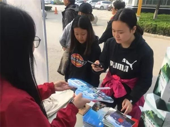 營銷中心工作人員耐心細致地幫助游客參與活動