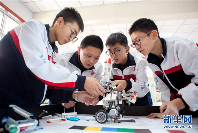 近年來,河北武邑中學開設機器人、航模、科技實驗等趣味科普課程,激發(fā)學生的創(chuàng)新創(chuàng)造意識和科學探索精神,讓學生近距離感受科技魅力。 新華社記者 朱旭東 攝
