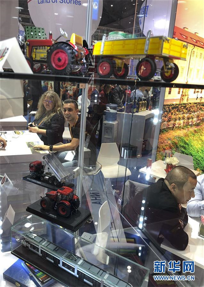11月6日,參會者在首屆中國國際進口博覽會捷克展區(qū)觀看模型。新華社記者殷剛攝