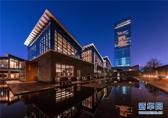 坐落于嘉定新城遠香湖畔的嘉定圖書館(2017年12月24日攝)。 新華社發(fā)(嘉定圖書館供圖)